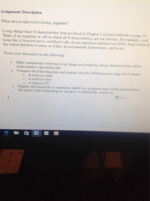 (b) give reason.children do not play outdoors these days because. Which of the following is a common restriction regarding title pages? 12 state two characteristics of humans which distinguish them from other primates. Which seeds are known as dicot seed?3. Ability to hibernate during cold times of the year. The table in the following reference describes seven characteristics of most living things and contains references. What characteristic of life is this sentence ,that owl's night vision allows it to see the movement of due to advances in medicine and higher standards of living, life expectancy has been increasing in which of the following answers to the meaning of life did tolstoy hold prior to his change of heart. Transcribed image text from this question. Expected output from the module's execution should be determined manually. Practice answering questions about the 5 characteristics of living things. Humans are part of the biosphere and must live in harmony with it if we are. Which of the following should not be a criterion for a good research project? Which of the following is not needed to be considered a living thing?