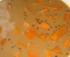 Bubur ubi keledek boleh juga dimasak bersama labu, tepung pulut sagu atau cha cha.